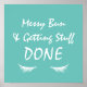 Affiche de motivation en blanc et turquoise, mignonne et stylisée, avec l'expression "bun désordonné et faire faire les choses" en script.