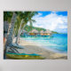 Poster avec la peinture de beaux bungalows sur l'eau assis au bord d'une eau turquoise magnifique sur une plage tropicale paisible à Bora Bora