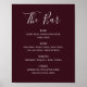 Poster Burgundy script simple mariage boissons menu bar