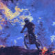 Ce motard à moto-terre court habilement à travers les sentiers brûlants sur son chemin vers la sécurité. Idéal pour les enfants et les sportifs de tous âges.