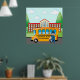 Un autobus scolaire et son chauffeur devant une école. Ce design semble vraiment efficace sur ces Poster