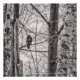 Photo en noir et blanc d'un faucon perché sur une branche dans un groupe d'arbres. Copyright ©2024 Kimberly J Tilley. zazzle.com/store/developingnature