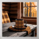 Poster Cabine Plaid Café Automne Forêt Rustique Accueil A
