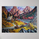 Cabine au bord de la petite affiche de Lake Mountains. Ceci est tiré d'une peinture à l'huile sur toile réalisée par un membre talentueux de la famille. Profitez de la scène de la campagne.