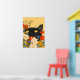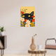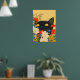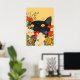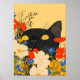 Illustration captivante d'un chat noir se cachant parmi les fleurs contre un arrière - plan jaune. Les yeux dorés du chat se détachent magnifiquement au milieu de fleurs colorées, dont des pavots, des fleurs de maïs et des marguerites. Un choix parfait pour les amoureux de les chats ou les amateurs de nature.