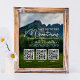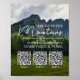 Ce panneau de registre de mariage alternatif "Caisse de voyage de noces" présente la légende "Emmène-nous dans les montagnes" dans des polices blanches modernes sur un fond d'image de paysage montagneux. Modifiez facilement la photo de fond avec celle de votre choix et ajoutez jusqu'à 3 codes QR pour inviter vos invités à contribuer à vos vacances de rêve en envoyant des dons en espèces à votre application de paiement avec leur téléphone mobile.