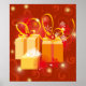 Scène de Noël Rouge & Or avec trois boîtes de cadeaux de Noël avec des rubans et des flocons de neige, disponibles sur une gamme de produits assortis de notre magasin. Aussi disponible en tant qu'entreprise de noël nom de fête badges et cadeaux d'entreprise. sgb01