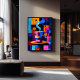 Cette oeuvre d'art audacieuse de tasse de café abstraite combine des textures expressionnistes et des motifs géométriques, créant une composition dynamique et dynamique. La tasse, construite à partir de blocs de couleur fragmentés dans des oranges chaudes, des bleus profonds et des roses vives, émet de l'énergie, tandis que la vapeur tourbillonnante ajoute un sens du mouvement. Une pièce parfaite pour les amateurs de café, les amateurs d'art moderne et ceux qui recherchent un décor contemporain et animé.