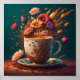 Poster Café et fleurs