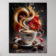 Poster Café et fleurs