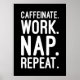 Poster Caffeinate Répéter la sieste - Drôle Motivationnel