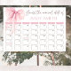 Élégant calendrier "Devinez la date prévue d'accouchement" pour baby shower Coquette Rose à nœud, avec des nœuds roses délicats et des détails élégants. Activité parfaite pour que les invités prédisent l'arrivée du bébé tout en ajoutant une touche personnalisée et élégante à votre décoration de célébration.