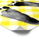 Empreintes de bébé noires sur fond à carreaux blanc et jaune pour jeu de Baby Shower