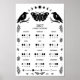 Affiche de calendrier lunaire céleste Moth and Crow de la sorcellerie noire et blanche est parfaite pour les activités de sorcellerie et d'astrologie.