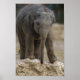Un bébé éléphant explore ses environs. Ses gros pieds essayant de grimper sur la roche.