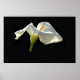 Un lys calla blanc contre un arrière - plan noir est rétro-éclairé avec des pétales translucides.