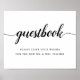 Signale simple et chic invitations invités mariages pour signer votre livre d'or. Personnalisez avec deux lignes de texte personnalisé dans un script de calligraphie noire et des lettres serif traditionnelles (illustrées par "Guestbook; laissez vos souhaits pour le nouveau Mr et Mme. [nom]").