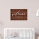 Signe de mariage de bienvenue minimaliste rustique et élégant pour s'afficher comme un magnifique panneau de salutation des invités. Le design de l'enseigne d'accueil comprend "Welcome" dans une typographie de calligraphie de script blanc moderne. Personnalisez avec le nom de la mariée et du marié et la date du mariage. Le faux arrière - plan en bois rustique ajoute un aspect rustique à la campagne.