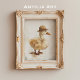 Ajoutez une touche de fantaisie à votre espace avec cette charmante œuvre d'art murale représentant un adorable caneton portant un chapeau ludique. Les coups de pinceau délicats et les tons doux et neutres créent une scène charmante à la fois chaleureuse et élégante. Parfaite pour les nurseries, les chambres d'enfants ou tout espace ayant besoin d'un accent léger et joyeux, cette œuvre d'art apporte un sourire à tous ceux qui la voient. Le caractère excentrique du petit caneton ajoute un élément unique et attachant à votre décoration intérieure, ce qui en fait un cadeau idéal ou un ajout charmant à votre propre collection.