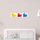 Belle illustration de trois canards colorés différents flottant ensemble en rang. Image disponible sur divers cadeaux et produits.