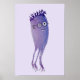affiche geek de méduse monstre avec une aquarelle illustrant un caractère bleu pourpre souriant avec lunettes nerd, tentacules, grandes dents et cheveux amusants. Ce design monstre amusant séduira ceux qui aiment l'art amusant, idiot, geek.