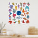 Un tas de différents personnages de dessins animés style vie de mer. Ce design semble vraiment efficace sur ces Poster