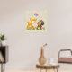 Une affiche avec une jolie illustration montrant un cerf de bébé et un petit écureuil tenant une glande et un papillon volant au-dessus de leur tête. Ces adorables créatures boisées se tiennent debout sur une herbe avec quelques champignons fantaisistes à leurs pieds. L'Arrière - plan a un look de papier kraft brun.