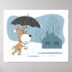 Ce poster présente une illustration de Chiot drôle se promenant le long de la rue sous la pluie battante. Le petit chien porte des bottes en caoutchouc et tient un gros parapluie entre ses mains. Grand poster pour les amoureux de les chiens.