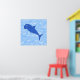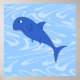 Un requin caricature bleu sur un arrière - plan ondulé bleu clair.