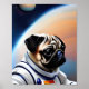 Peinture numérique d'un carlin spatial mignon dans la combinaison spatiale avec les planètes. L'art de la science-fiction.