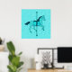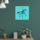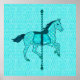 Graphique numérique multimédia mixte d'un cheval carrousel classique, en motif mixte, contre un arrière - plan carrelé arabesque - Turquoise / Peacock et aqua, accentué avec turquoise