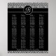 Un tableau des sièges de réception de mariage est une façon élégante d'orienter vos invités vers leurs tables au lieu d'utiliser des cartes de visite. Vous pouvez également garder votre carte de sièges comme un moment de votre mariage et des gens qui ont célébré avec vous. Ce tableau de sièges mariage monogrammé présente un joli motif damassé floral noir et blanc avec une initiale en cercle noir. Il est conçu pour s'adapter dans un cadre standard et est livré dans une variété de tailles, y compris : 11x14, 15x19 et 23x29. Vous pouvez fournir votre propre cadre, ou commander votre carte mariage avec un cadre inclus. Nous proposons également une version carré de ce tableau d'assignation des sièges mariages. Vous pouvez ajouter des noms d'invités, customiser la lettre monogramme et ajuster la mise en page sur la page de commande de produit. N'oubliez pas de consulter les autres produits de coordination de notre collection de Mariages Floral Damask II - Black.