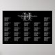 L'affiche du tableau des sièges de réception de mariage noir et blanc est de 24 x 36 pouces. Arrière - plan noir avec texte blanc et initiale gris foncé. Siégez les invités par nom initial ou par numéro de table / nom. Supprimez les sections inutiles.
