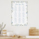 Voici notre élégant tableau de sièges de mariage, orné d'un cadre floral bleu et doux étonnant et de calligraphie classique. Le tableau de bord est composé d'un cadre botanique bleu, blanc et vert, complexe, avec des roses blanches, une hydrangée bleue et un délicat delphinium bleu et une verdure qui est à la fois intemporelle et unique, ce qui fait de votre tableau de bord un modèle différent du reste. L'élégante calligraphie apporte une touche personnelle à la fois romantique et enchanteresse.