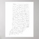 Carte de l'état de l'Indiana avec les contours et les noms des comtés pour la classe ou les affaires. Le papier d'affiche mat peut être écrit avec des marqueurs.