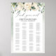 Panneau mariage vert boho rose blanche, plan alphabétique, facile à personnaliser. Roses blush ©
