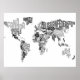Une carte texte typographique du Monde. Chaque pays est représenté par son nom, qui est façonné pour s'intégrer dans la zone géographique correcte. Pratiquement tous les pays sont représentés s'attendent à ce que certaines des îles les plus petites du Pacifique et des Caraïbes.