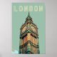 Un grand cadeau pour tous les amoureux londoniens idéal offrir ou envoyer à un ami, belle affiche d'illustration rétro originale avec vue sur Big Ben à Londres Angleterre Royaume-Uni