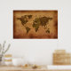 Poster Carte Rustique 3D World Map sur l'effet Parchemin