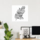 Poster Carte typographique noire de Co. Wexford, Irlande