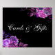 Poster mariage noir "Cartes et cadeaux" avec fleurs d'aquarelle violet. Contactez-moi, s'il vous plaît, si vous avez besoin d'autres articles.