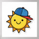 Graphique de haute qualité d'un soleil joyeux et souriant portant un casquette de baseball, dans un style simple dessin animé. Ce design est parfait pour une large gamme de produits pour ceux qui aiment l'art lumineux et capricieux.