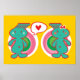 Poster Cartoon mignon Funky Green Alien garçon & fille co