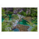 Peinture de vue d'en haut de cascades cascades et sentier en bois avec touristes dans le parc national de Plitvice, Croatie. Paysage de chute d'eau de la forêt de montagne.
