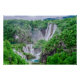 Peinture à l'huile de grandes chutes d'eau dans le parc national des lacs Plitvice, Croatie. Cascade de deux grandes cascades en été. Paysage de chute d'eau de la forêt de montagne.