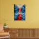 Une oeuvre d'imaginaire fascinante représentant une cascade rouge qui s'écoule à travers une pinède enneigée. Le contraste surréaliste de l'eau ardente par rapport à la neige bleue glacée crée une atmosphère dramatique et onirique. Parfait pour les amateurs d'imaginaires, les amateurs de nature et ceux qui recherchent un décor audacieux.