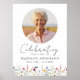 Bienvenuez les invités à la célébration de la vie de votre proche avec ce panneau de deuil photo de prairie de fleurs sauvages élégantes. Le design présente une écriture manuscrite noire et une photo ronde. Une belle prairie de fleurs sauvages aquarellées et de feuillage borde le bas du design dans des teintes vibrantes de rose, jaune, violet, bleu et vert contrastant avec un fond blanc. Personnalisez ce panneau de deuil aux fleurs sauvages avec le nom de votre proche et les dates indiquées ci-dessous.