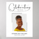 Cette affiche funéraire mémorielle moderne présente le texte 'Célébrons la vie de', la photo de votre proche, leur nom et leurs dates de naissance et de décès. TÉLÉCHARGEMENT INSTANTANÉ ou commande IMPRIMÉE. Articles CORRESPONDANTS dans notre collection.