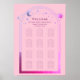 Celestial rose violet soleil Lune étoiles Mystical Mariage Seating Chart Mariage Sign Instant Télécharger Digital Imprimable affiche présente un soleil rose et violet, lunette et étoiles encadré sur arrière - plan rose. À l'intérieur du cadre est le texte "Welcome" dans un élégant script de calligraphie rose et vos informations personnalisées sur le plan des sièges de réception de mariage. Conçu pour vous par ©2022 Evco Studio www.zazzle.com/store/evcostudio