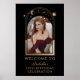 Celestial Black Gold 30th Birthday Welcome Poster présente un élégant cadre de soleil, de lune et d'étoiles en or sur un arrière - plan noir. À l'intérieur est votre photo préférée et sous votre signe d'anniversaire de bienvenue. Personnalisez en modifiant le texte dans les zones de texte et en ajoutant votre photo préférée. Conçu pour vous par ©2024 Evco Studio www.zazzle.com/store/evcostudio